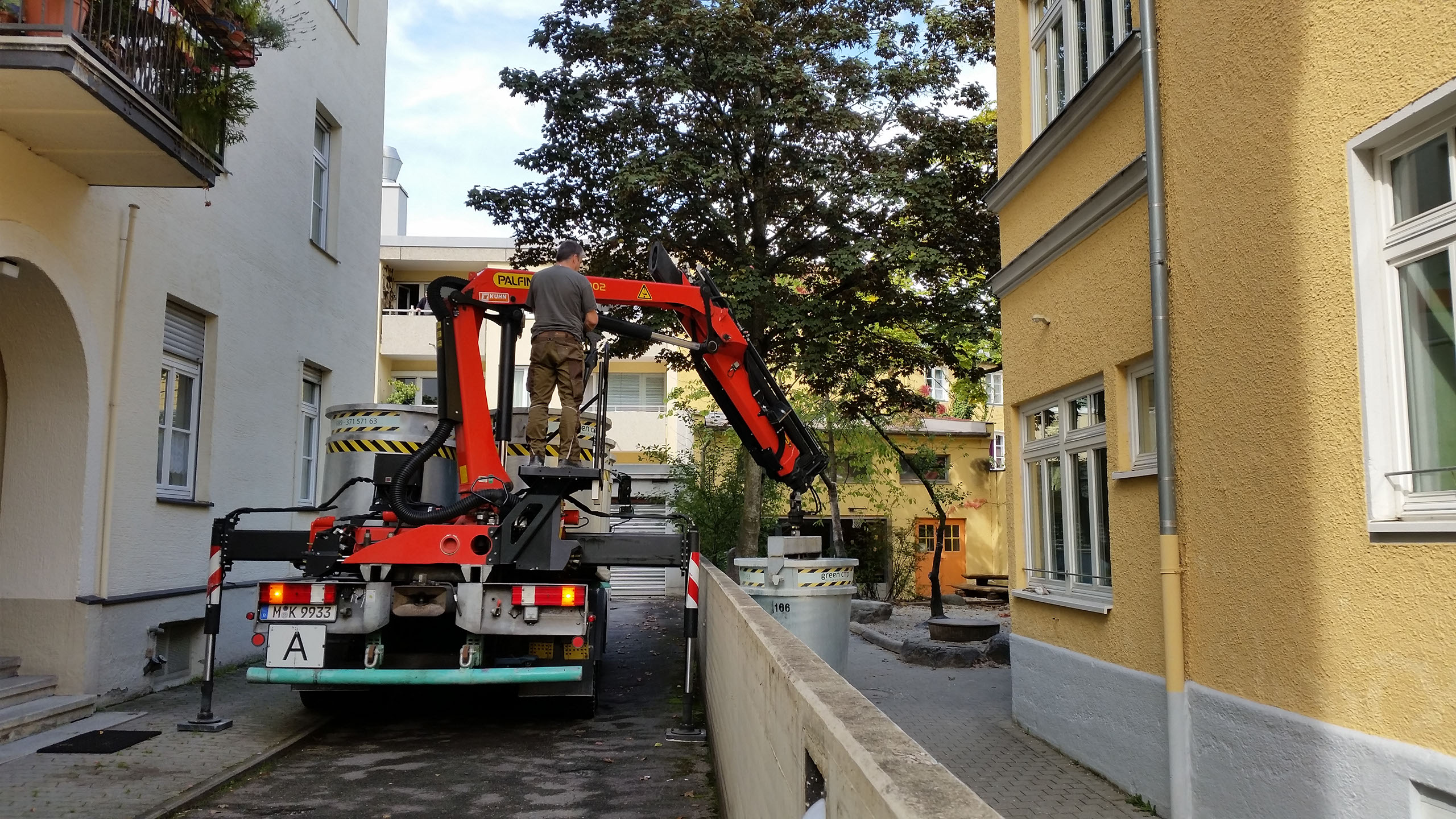 Und da wir die Minis mit Ladekran anliefern, sind Hindernisse wie Gartenzäune, Mauern usw. kein Problem. Wir stellen da auf, wo sie gebraucht werden.