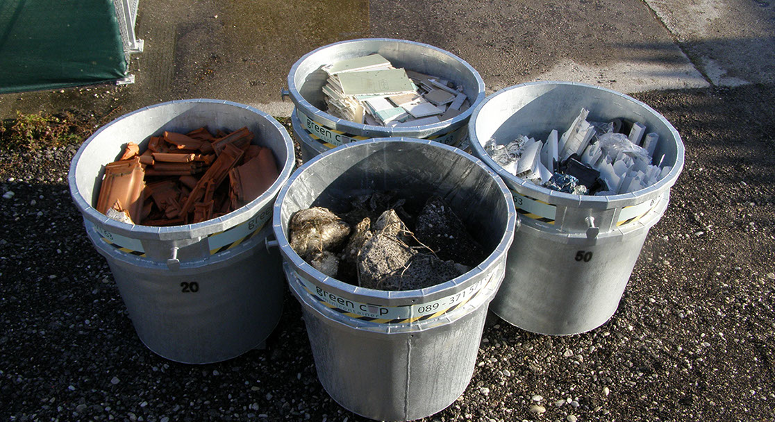 Wir bieten die einzigartige Möglichkeit, verwertbare Abfallstoffe von der Baustelle weg in kleinen Mengen sortenrein zu sammeln. 80% der Baurestmassen werden in die Rohstoffkette rückgeführt.