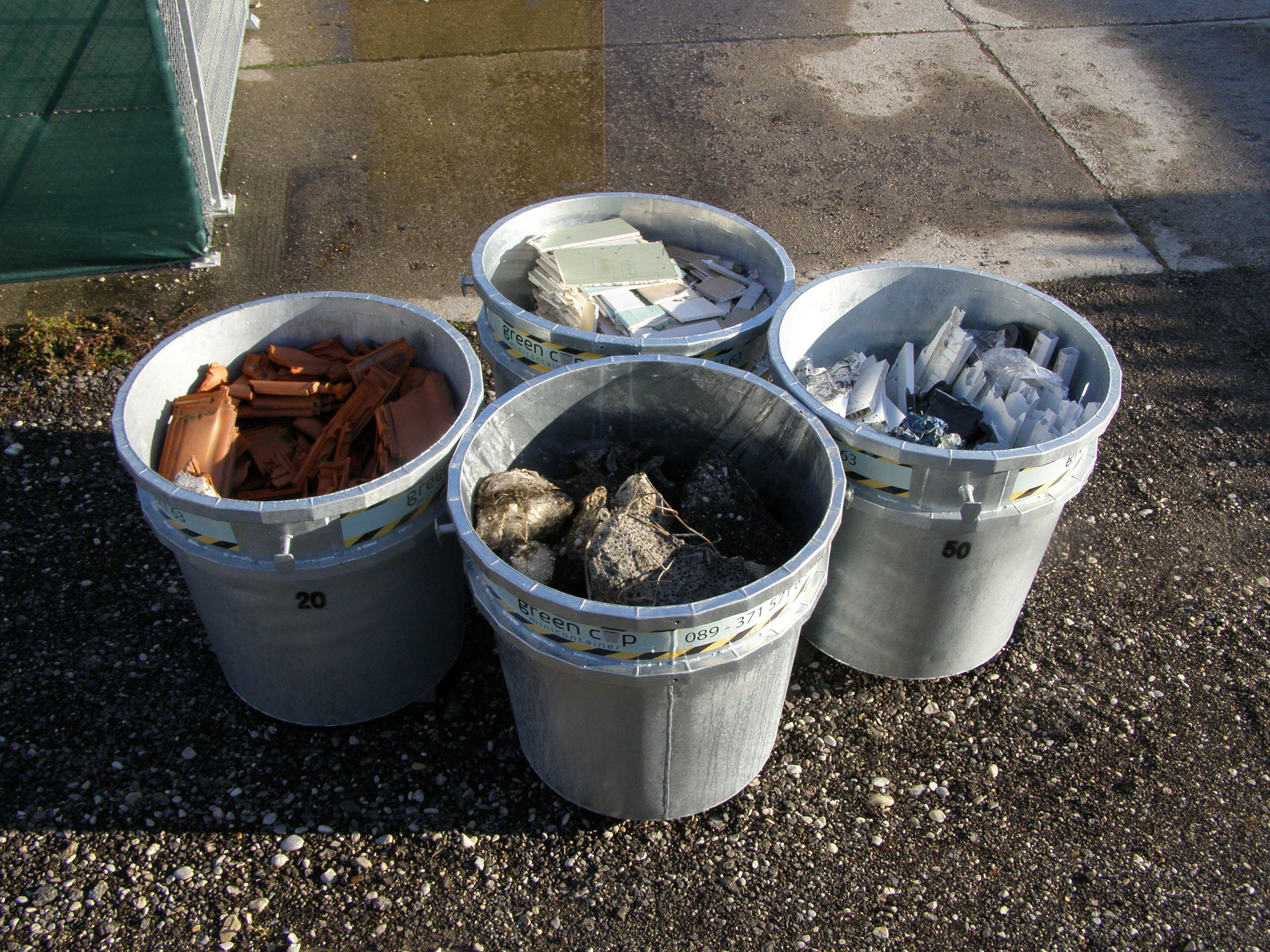 Durch die Schaffung sogenannter „Mini-Inseln“, werden Bauschutt, Holz, Metall, Kunststoff, … getrennt gesammelt.